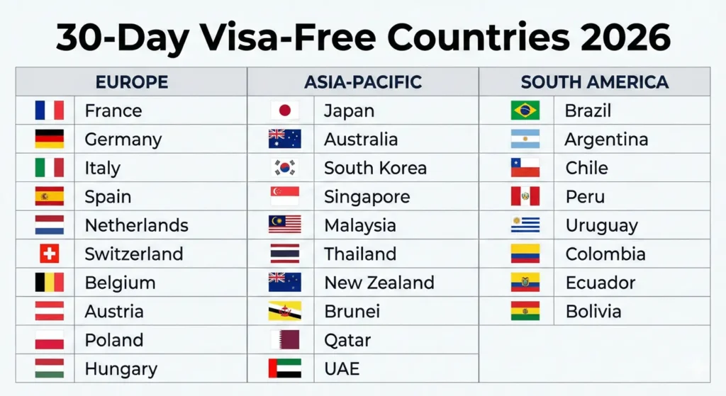 The “Zero-Paperwork” Entry: 30-Day Unilateral Visa-Free