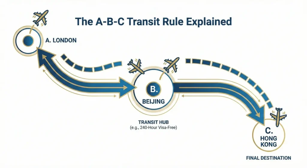 This is where 90% of travelers fail. To qualify, your itinerary must be a continuous transit to a third country.